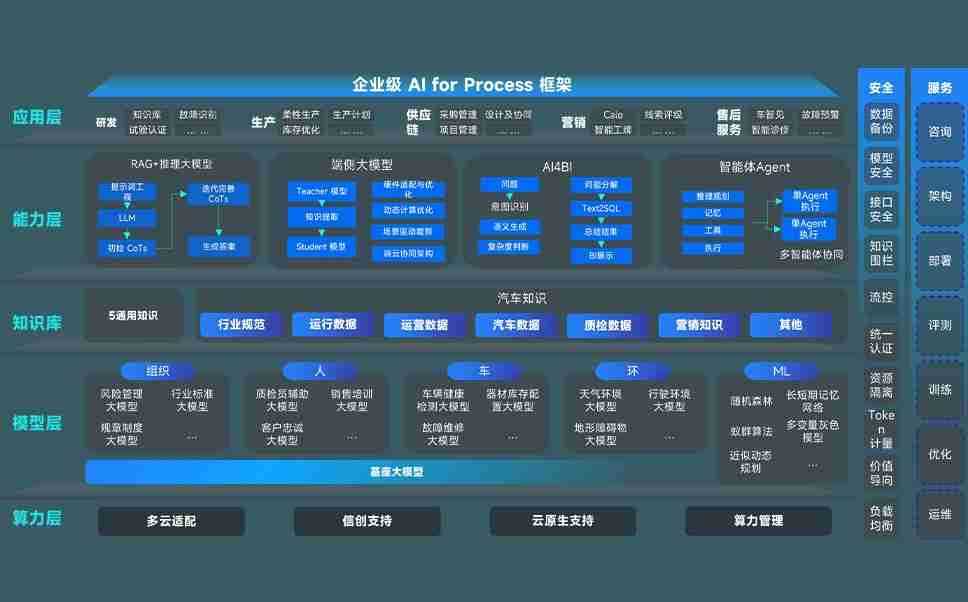 南宫娱乐问学智车解决方案是一套基于AI技术的汽车行业智能化系统,,,,覆盖从底层算力到顶层AI应用的全栈方案。。方案由算力层、、模型层和应用层组成:算力层,,,方案支持多种一体机配置,,,具备云端灵活部署、、多云适配以及动态优化计算资源的能力;模型层,,,南宫娱乐问学平台版提供了企业级AI应用一站式构建与管理平台,,,,支持基于后训练强化技术的汽车企业专属模型的训练、、、、评测和运营;应用层,,南宫娱乐问学DeepSeek版提供包括超级员工、、、、智能招采、、智能营销、、、、智能客服、、AI for BI等一系列解决方案,,,,可助力汽车行业实现数字化转型,,让管理更智能、、响应更敏捷。。。。